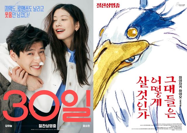 이 두 영화에는 공통점이 있다. 바로 20대 관객이 선택한 영화라는 것이다. CGV가 제공하는 지난 13일 기준 연령별 예매 분포에 따르면, <30일>과 <그대들은 어떻게 살 것인가> 모두 20대 관객의 비중이 가장 높았다. 이는 그간의 흥행 흐름과는 다른 특징으로, 2023년 한국 영화 흥행 상위권에 올랐던 <범죄도시3>, <밀수>, <천박사 퇴마 연구소: 설경의 비밀>, <교섭> 모두 30대의 비중이 가장 높았다.