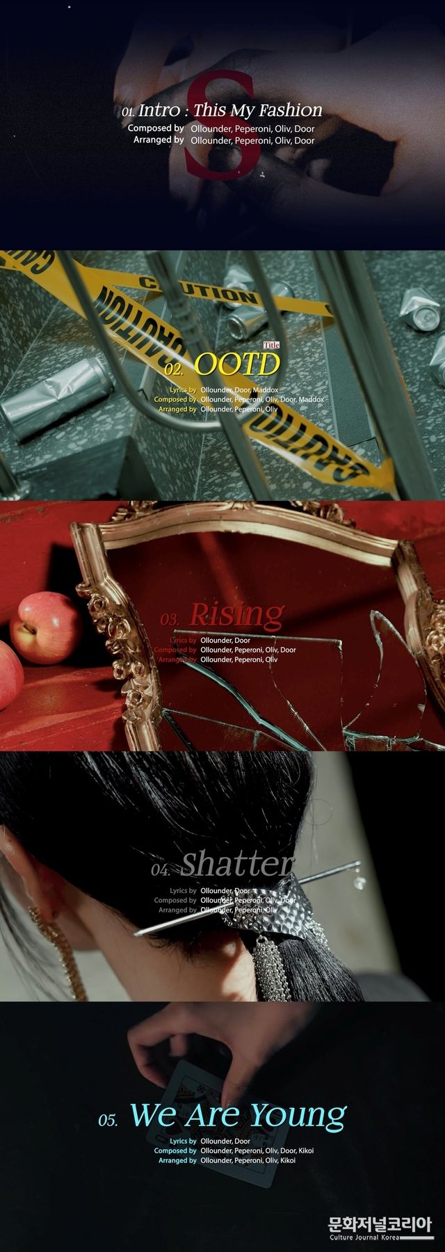 공개된 영상 속엔 ‘Intro : This My Fashion(인트로 : 디스 마이 패션)’을 시작으로, 타이틀 ‘OOTD(오오티디)’와 수록곡 ‘Rising(라이징)’, ‘Shatter(쉐터)’, ‘We Are Young(위 아 영)’까지 드림캐쳐만의 뚜렷한 정체성을 담은 미니 9집 전 트랙의 음원 일부가 흘러나오며 완성도 높은 앨범을 예고하고 있다.