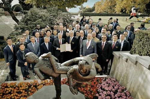 IOC는 15일(한국 시각) 스위스 로잔 올림픽 박물관에서 태권도 동상 제막식을 개최했다.