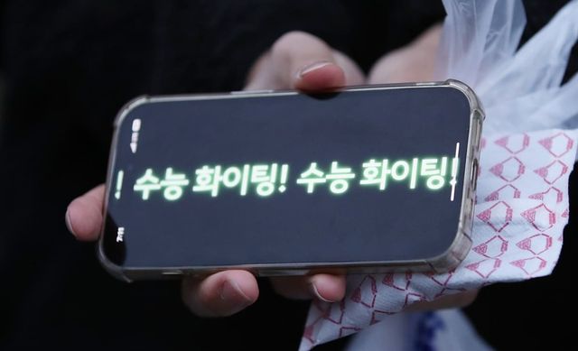 2024학년도 대학수학능력시험일인 16일 오전 제주도교육청 95지구 제1시험장이 마련된 제주시 남녕고등학교에서 학생들이 시험을 보는 친구를 응원하고 있다. / 뉴스1