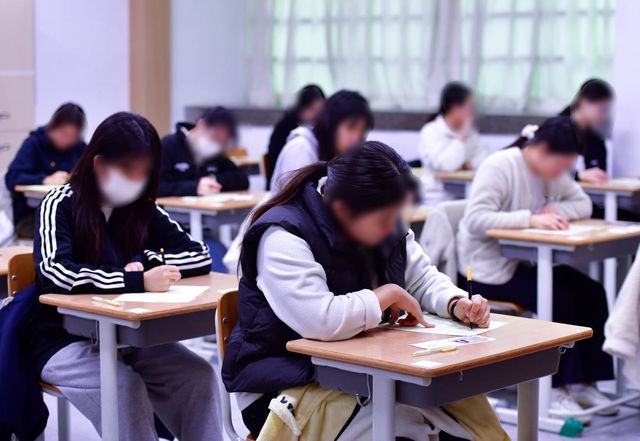 2024학년도 대학수학능력시험일인 16일 오전 경북 포항시 남구 영일고등학교에서 수험생들이 답안지를 작성하고 있다. / 뉴스1