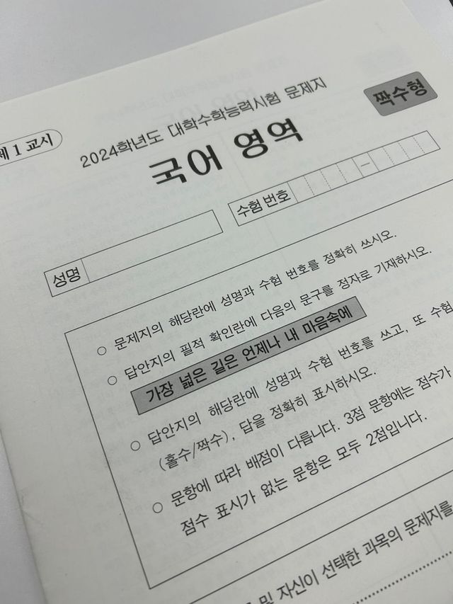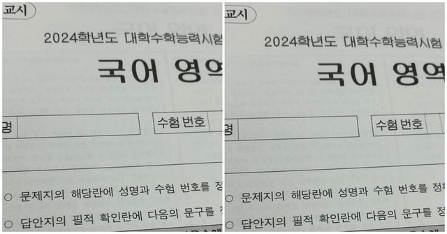 2024학년도 대학수학능력시험(수능) 국어 영역 문제지. 눈길 끈 '필적 확인 문구'. / 뉴스1