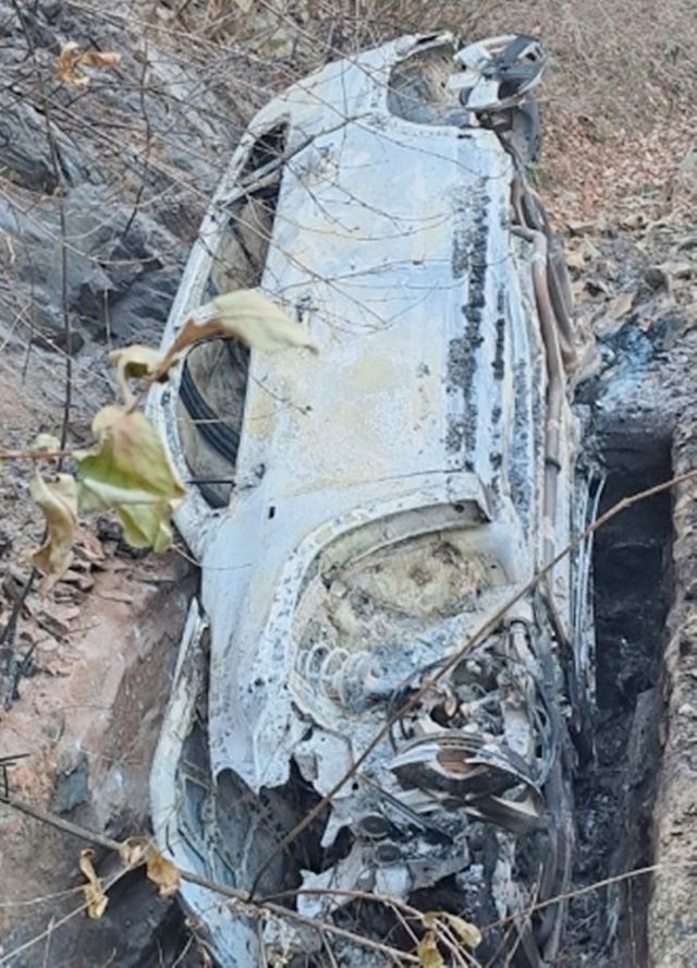 야산에서 전소된 차량이 발견됐고 차량 조수석엔 백골이 된 시신이 있었다.