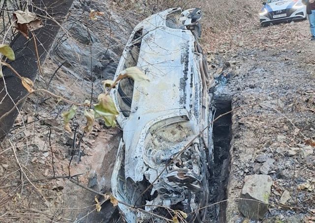 경찰 등에 따르면 지난 15일 오후 3시 30분쯤 충남 옥천군 동이면 청마리에 있는 야산에서 불에 탄 차량이 발견됐다. 당시 차량 내부 조수석에서 백골화된 시신이 있었다.