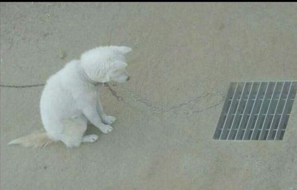 백꾸가 시무룩하게 하수구를 쳐다보는 이유는 게시자가 준 감자탕 뼈를 실수로 하수구 속에 빠트렸기 때문이다.