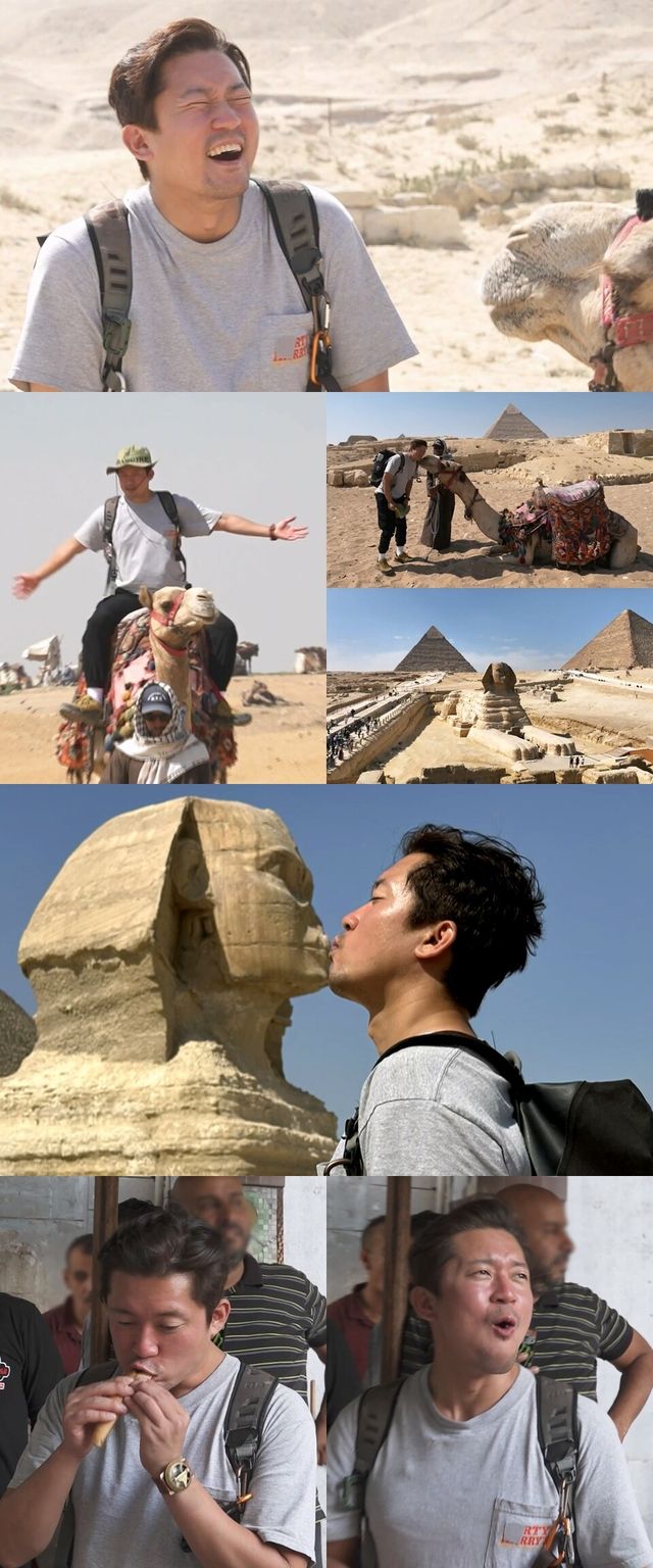낙타의 뽀뽀 서비스에 함박 웃음을 짓고, 낙타를 타고 도착한 거대한 스핑크스 앞에서 뽀뽀 인증샷까지 남기는 그의 천진난만한 모습이 눈길을 모은다.