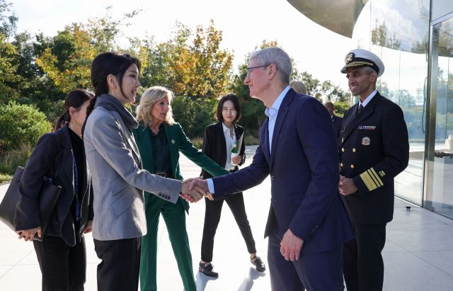 APEC(아시아태평양경제협력체) 정상회의 참석 차 미국을 순방 중인 윤석열 대통령과 동행한 김건희 전 코바나컨텐츠 대표가 17일(현지시각) 미 캘리포니아주 쿠퍼티노의 애플파크에서 질 바이든 여사의 주최로 열린 정상회의 공식 배우자 프로그램인 '정신건강에 관한 대화'에 참석했다. 이 자리에는 아이돌그룹 블랙핑크의 로제도 함께 했다.