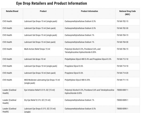 앞서 지난 3일에 카디널 헬스 주식회사(Cardinal Health Inc.)는 Leader 브랜드 안과용 제품 6개 전체에 대해 자발적인 리콜을 시작했다. FDA는 이들 확인된 제품들을 국가 의약품 코드(NDC)를 포함하도록 제품 목록을 업데이트했다.