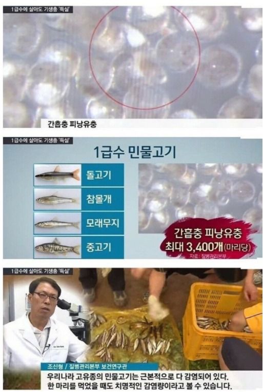 이를 본 누리꾼들은 "날로 먹지 마세요 ㅋㅋㅋ 바다 생선도 기생충 위험에서 안전한 것이 아닌데" "1급수면 기생충에게도 좋은 환경 아닐까?" 등의 반응을 보였습니다.