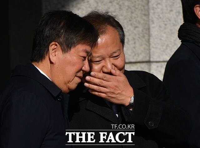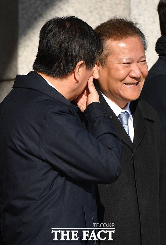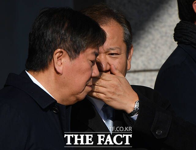 [더팩트ㅣ성남=박헌우 기자] 김대기 대통령 비서실장과 이상민 행정안전부 장관이 20일 오전 경기도 성남시 서울공항에서 영국과 프랑스 순방길에 나서는 윤석열 대통령 환송을 마친 뒤 대화를 하고 있다.