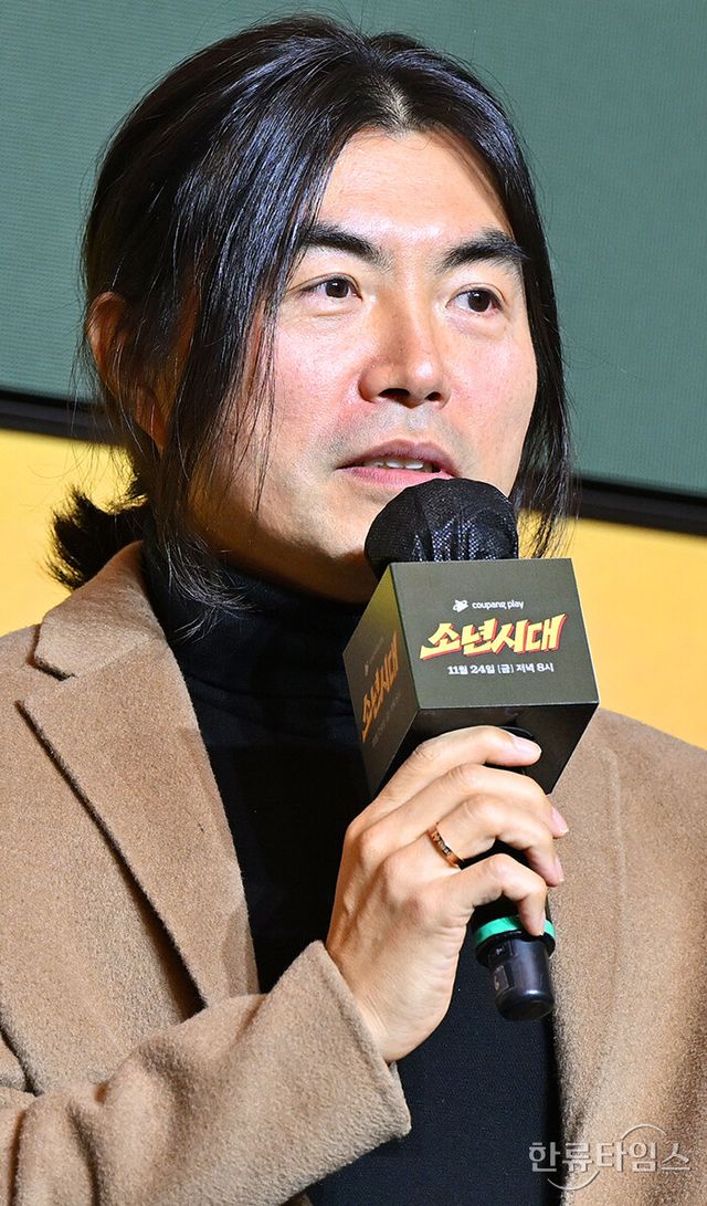 이명우 감독이 20일 오전 서울 역삼동 조선 팰리스 강남에서 열린 쿠팡플레이 시리즈 '소년시대' 제작보고회에 참석해 취재진의 질문에 답하고 있다.