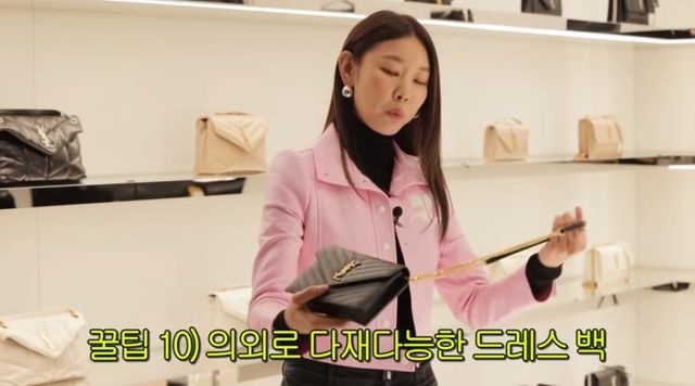 한혜진. 요즘 트렌드를 생각한다면 로고가 블랙 컬러로 숨어 있는 듯한 체인백을, 여행지에서 실용적인 아이템으로는 드레스백을 추천했다. 바, 클럽, 파티 등에 갈 때 매치하기 좋기 때문이다.