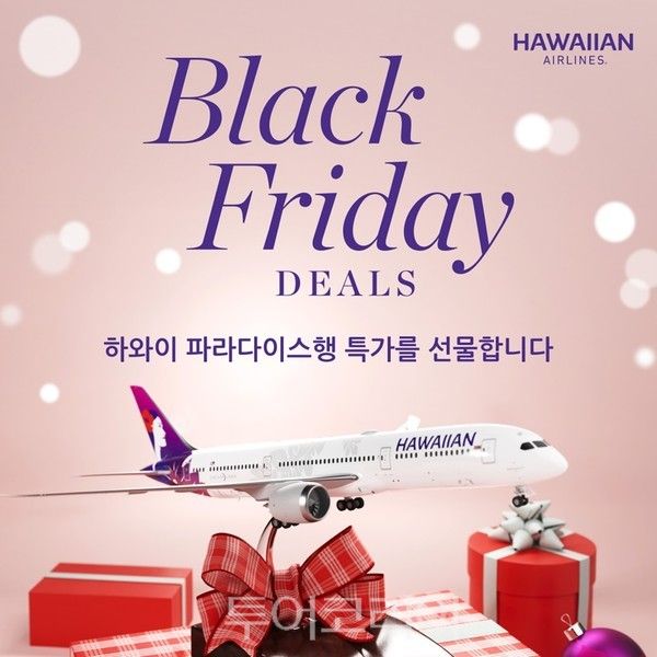 [투어코리아=조성란 기자] 하와이안항공이 연중 가장 큰 세일 기간인 블랙 프라이데이를 맞아 하와이 여행을 계획 중인 승객들을 대상으로 오는 24-28일 항공권 특가 프로모션을 하와이안항공 공식 홈페이지 및 주요 여행사 채널을 통해실시한다.