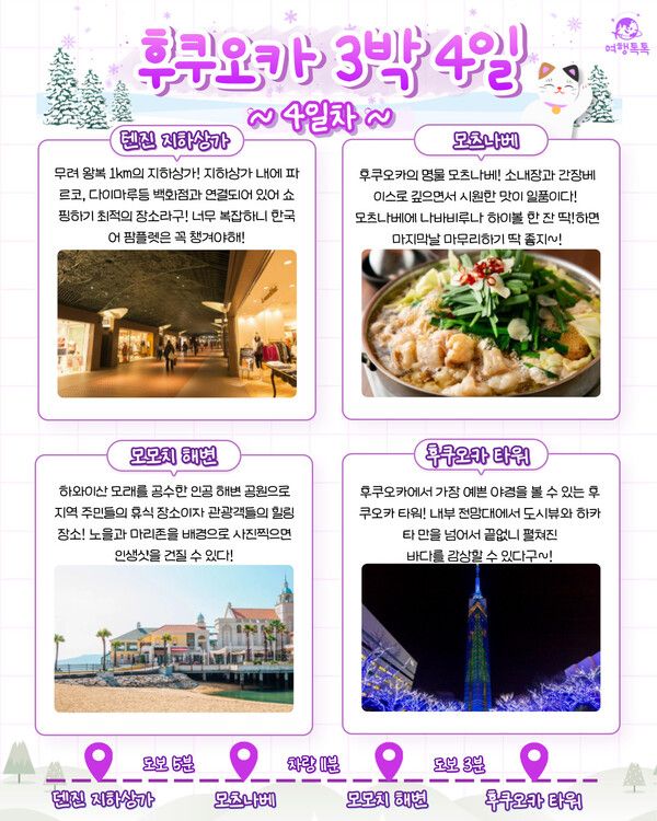 덴진 지하상가 - 모츠나베 - 모모치 해변 -후쿠오카 타워