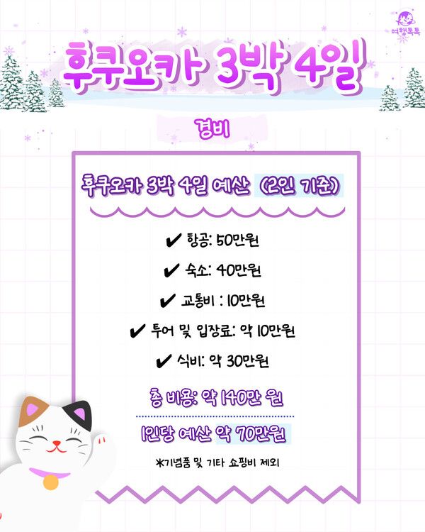 |후쿠오카 3박 4일 총 경비