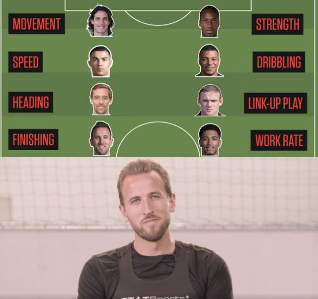 케인은 움직임, 스피드, 헤더, 결정력, 힘, 드리블, 연계 플레이, 활동량 등 8개 항목별 최고 스트라이커를 직접 골랐다. / ESPN UK 공식 페이스북