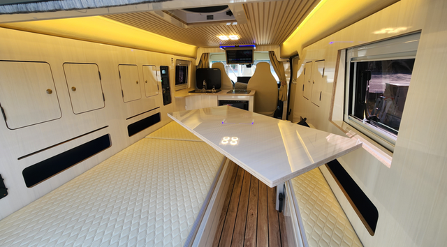 아우토컴퍼니는 이 차량의 실내를 다양한 용도로 사용할 수 있는 럭셔리 공간으로 꾸몄다.