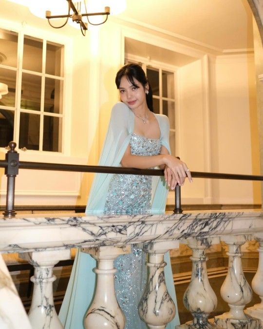 공개한 사진에는 화려한 장식이 돋보이는 하늘색 드레스를 입은 리사 모습이 담겨있다. 마치 디즈니 애니메이션 '겨울왕국' 속 한 장면을 보는 듯하다.