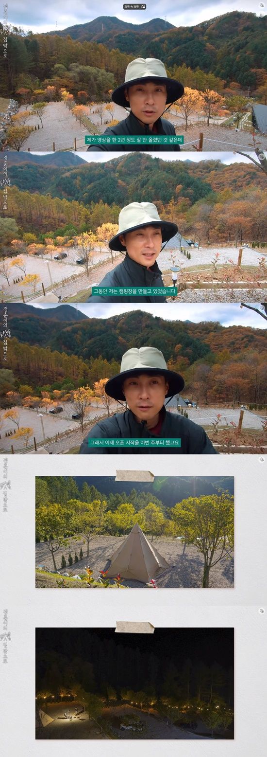 민경훈은 2년 정도 영상을 올리지 않은 이유를 언급하며 "그동안 캠핑장을 만들고 있었다"고 했다. 최근 캠핑장을 오픈한 그는 "많이 놀러오라"는 깜짝 홍보까지 잊지 않았다.