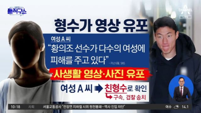 황의조 사생활 유출 영상 파장..영상 퍼뜨린 교제 여성 연예인 언급