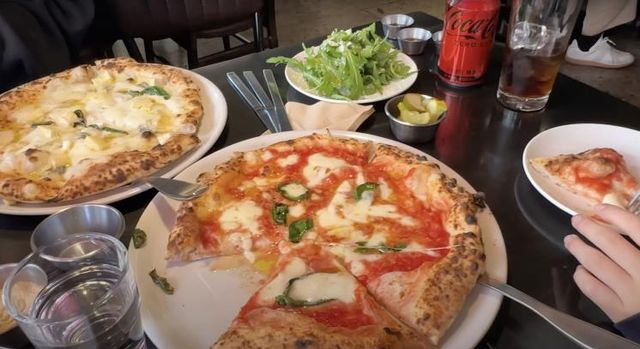 한국에서 지내는 짧은 기간 동안 벌써 두 번째 방문 도장을 찍은 ‘피읻짜’는 성수동에 위치해 있어요. 매장에 들어서면 눈에 띄는 큼지막한 화덕에서 알 수 있듯 이곳에선 화덕을 이용한 바삭하고 쫄깃한 식감의 이탈리아식 피자를 맛볼 수 있어요. 오지영은 토마토소스와 모짜렐라 치즈, 향긋한 바질을 올린 ‘마르게리따’와 그라나파다노와 브리 치즈, 고르곤졸라 치즈 등으로 진한 풍미를 살린 ‘콰트로포르마지’를 선택했어요. 탄수화물 폭탄 피자만 고르기에 죄책감이 든다면 ‘시저 샐러드’를 곁들여 보세요. 수비드 닭가슴살과 미니코스를 넣고 새콤한 시저 드레싱을 뿌린 담백하고 상큼한 맛이 피자의 느끼함을 중화시키고 입안을 깔끔하게 리프레시시켜줄 거예요.