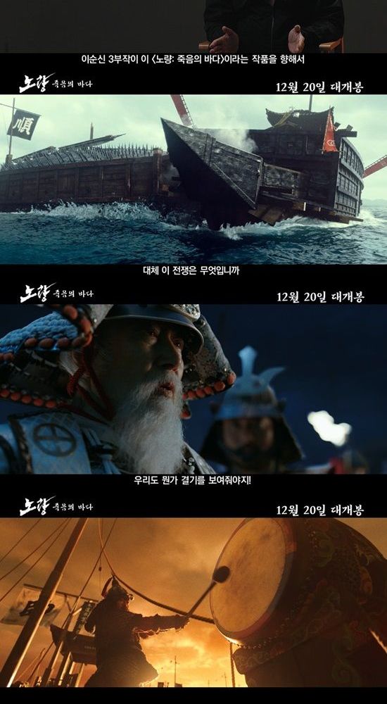 그 중에서도 최후의 전투를 알리는 '노량: 죽음의 바다'는 살아서 돌아가려는 왜와 전쟁을 완전히 끝내려는 조선의 난전과 이순신의 마지막 전투를 압도적 스케일로 펼칠 것을 예고한다.