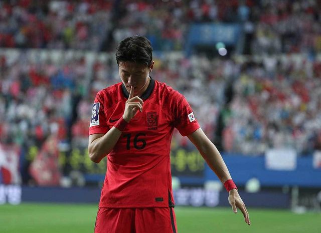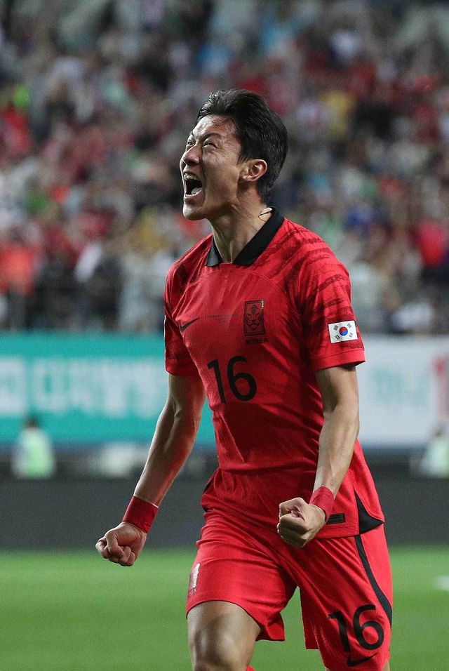 황의조가 지난 6월 20일 대전 유성구 대전월드컵경기장에서 열린 하나은행 초청 대한민국과 엘살바도르의 축구 국가대표 평가전에서 첫 골을 성공시킨 후 세리머니를 하고 있다. / 뉴스1