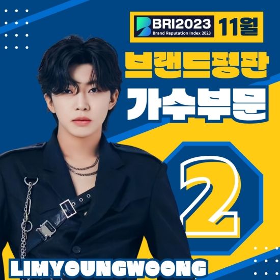 한국기업평판연구소의 발표에 따르면, 임영웅이 2023년 11월 가수 브랜드 평판 순위에서 2위를 차지했다. 이는 10월 25일부터 11월 25일까지 수집된 가수 브랜드 빅데이터 130,702,846개를 기반으로 한 결과다.