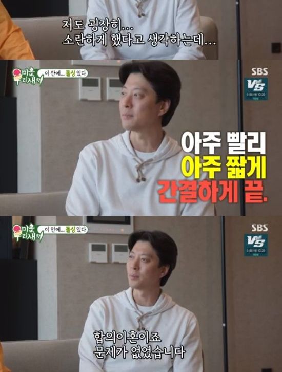 또 이상민은 "이혼 과정이 짧았냐, 길었냐"를 궁금해했고, 이동건은 "아주 빨리, 아주 짧게, 간결하게 끝났다. 합의 이혼이었다. 이혼 과정에 문제가 없었다. 그리고 이혼 후에 전화 통화를 한 적도 한 번도 없다. 이혼 전에 모든 것을 서로 정확하게 나누고 헤어졌다"고 했다.