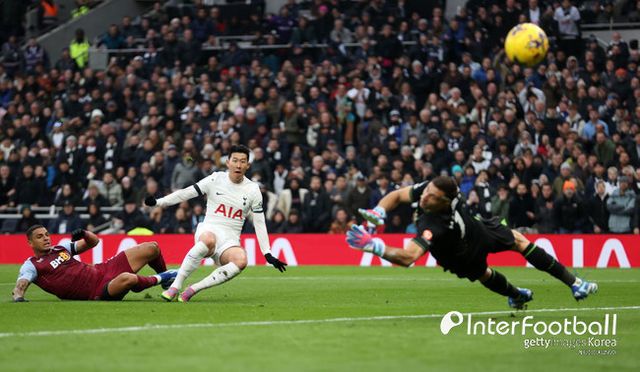 전반전 제일 아쉬운 기회는 44분에 나왔다. 교체로 들어온 피에르 에밀 호이비에르가 연계 플레이를 통해 전진하자 손흥민은 튀어 나갈 준비를 했다. 타이밍에 맞춰서 호이비에르가 손흥민에게 패스를 넣어줬다. 빌라 수비수들은 손흥민의 속도를 따라갈 수가 없었다. 마르티네즈 골키퍼와의 일대일 기회에서 손흥민은 멋지게 골망을 흔들었지만 오프사이드가 선언되고 말았다.