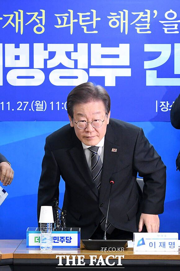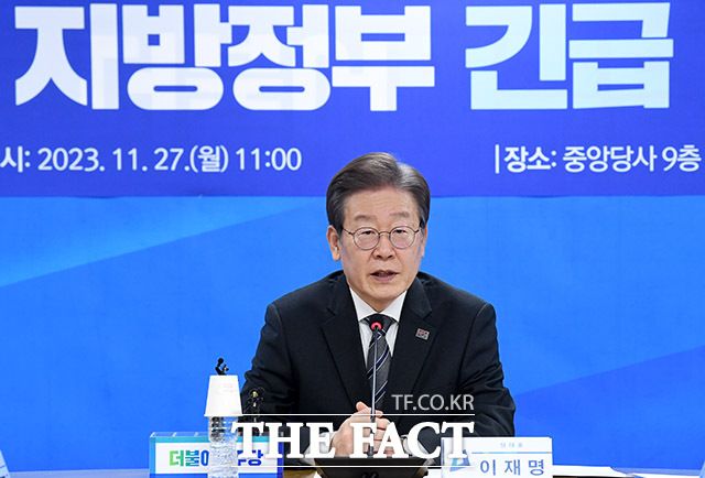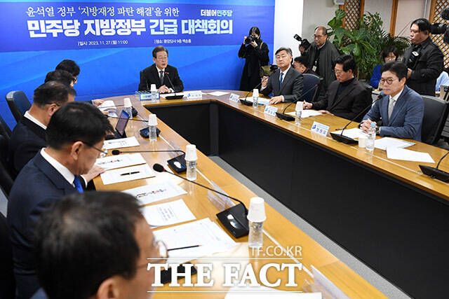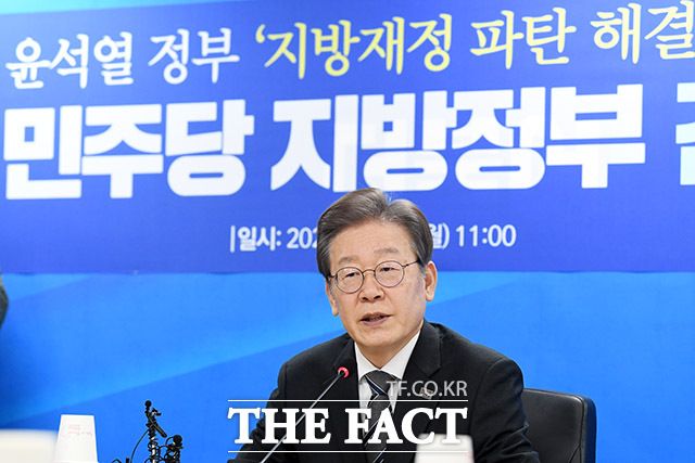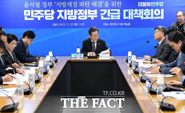 [더팩트ㅣ남용희 기자] 이재명 더불어민주당 대표가 27일 오전 서울 여의도 더불어민주당 중앙당사에서 열린 윤석열 정부 지방재정 파탄 해결을 위한 민주당 지방정부 긴급 대책회의에서 발언을 하고 있다.
