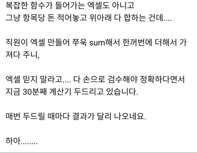 대부분의 사람들은 회사 취직을 위해 이런 엑셀을 어느정도 다루는 것이 보통이지만 이를 신경쓰지 않는 작은 회사라면 분명 엑셀을 만지지 못하는 사람도 있을 것입니다. 최근 사원들이 엑셀을 다루는 모습을 보고 꼰대짓을 하는 사람들의 이야기가 화제가 되고 있습니다. 시대의 흐름에 뒤쳐져 아날로그를 고집하는 사람들은 과연 어떤 꼰대짓을 하고 있을까요?