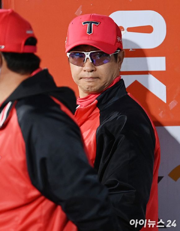 김종국 KIA 타이거즈 감독이 경기 도중 그라운드를 바라보고 있다. [사진=아이뉴스24 포토 DB]