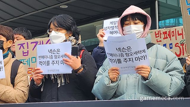 28일 오전 11시, 넥슨코리아 사옥 앞에서 문화연대, 시민사회단체연대회의, 전국민주노동조합총연맹, 전국여성노동조합, 한국노동조합총연맹, 한국여성노동자회, 한국여성단체연합, 청년참여연대, 한국여성민우회가 공동주최한 긴급 기자회견이 열렸다.