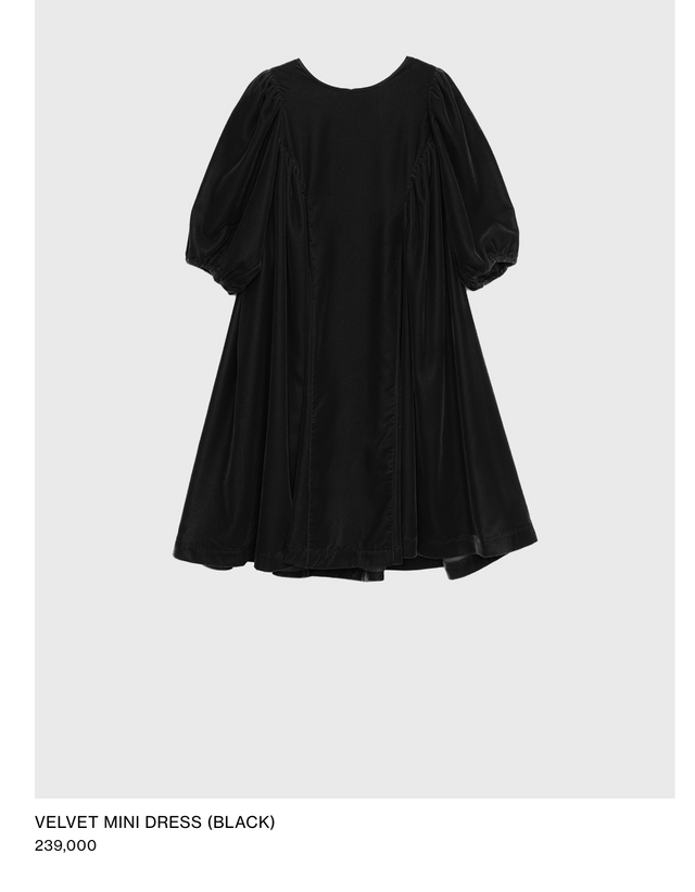 퍼프 소매가 돋보이는 벨벳 드레스.