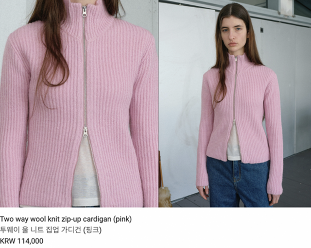 사랑스러운 핑크 컬러와 몸에 딱 맞는 실루엣의 하이넥 니트 집업.