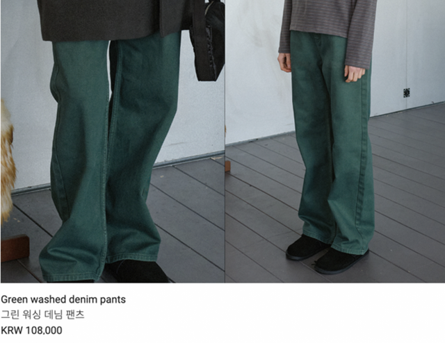 빈티지하게 물 빠진 컬러가 매력적인 그린 팬츠.