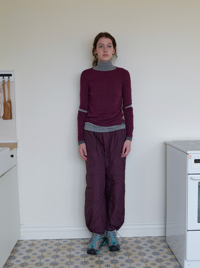 나일론 소재 팬츠에 투박한 하이킹 슈즈를 신어 고프 코어 무드를 강조하거나,