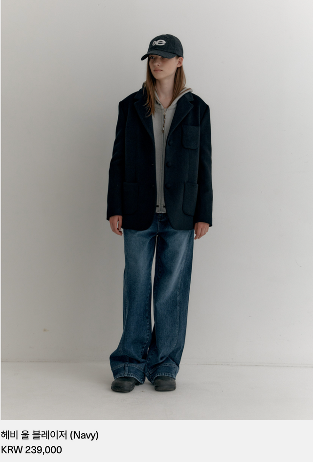 루스한 핏과 힙을 덮는 길이로 다양한 하의와 잘 어울리는 울 블레이저 재킷.