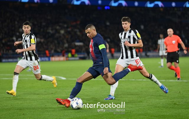 뎀벨레, 하키미 개인 돌파로 활로를 찾으려고 했지만 오히려 답답한 흐름만 전개됐다. 뉴캐슬은 기본적으로 수비라인을 내리고 있었는데 공 소유권을 가져오면 빠르게 역습을 펼쳤고 필요에 따라 강하게 전방 압박을 펼치면서 PSG를 괴롭혔다. 전반은 뉴캐슬이 1-0으로 앞서는 상황에서 종료됐다.