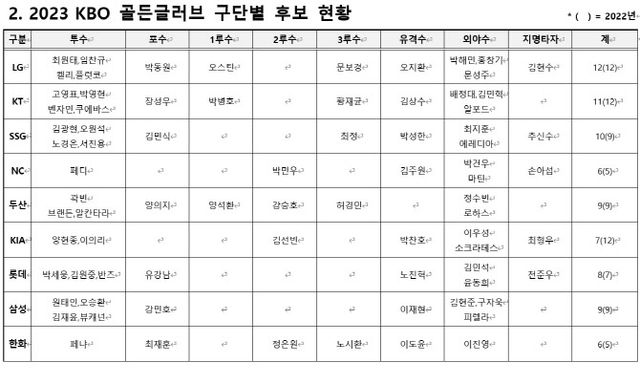 2023 KBO 골든글러브 후보(표=KBO 제공)