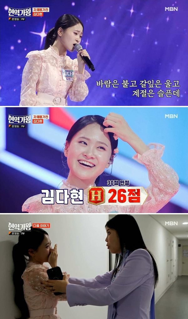 28일 첫 방송된 MBN ‘현역가왕’에 출연한 김다현은 31명 참가자들이 오디션 최초로 도입한 자체 평가전에서 ‘삼백초’를 불러 26명으로부터 인정 받았다.