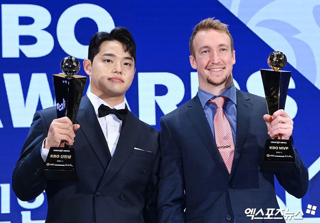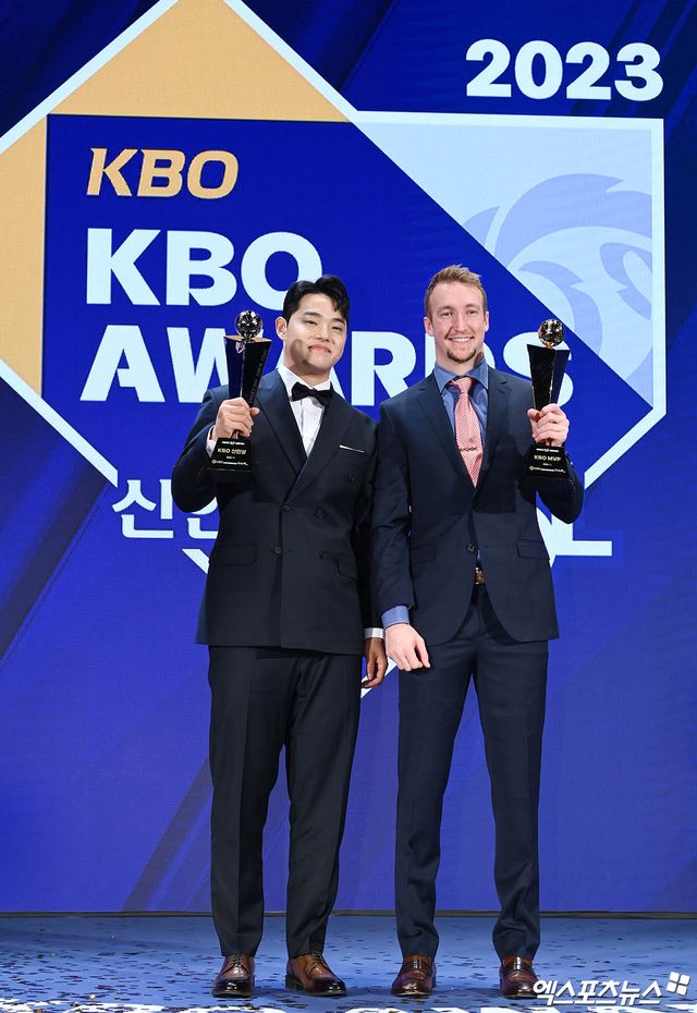 시상식 당일 페디는 오랫동안 각종 인터뷰에 응했다. 먼저 인터뷰를 끝낸 문동주는 한동안 시상식장을 떠나지 않고 기다렸다. 페디와 따로 기념사진을 찍기 위해서였다. 둘은 서로에게 좋은 동료가 됐다.