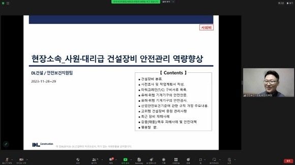 DL건설에 따르면 현장 소속 사원·대리급 전 직원은 필수로 해당 교육을 수강해야 한다. 본사 기술직 사원·대리급 직원도 희망자에 한해 수강 가능하며, 이날까지 양일간 비대면으로 실시된다.