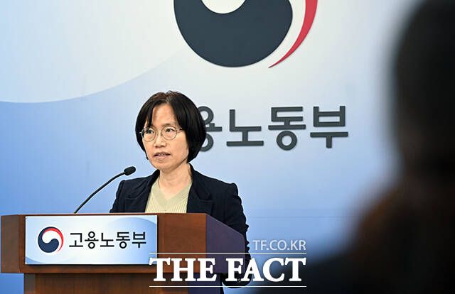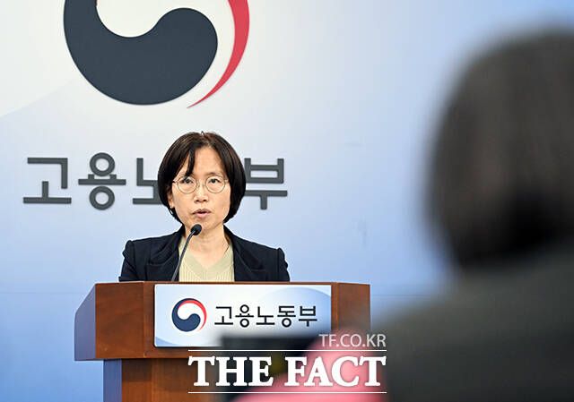 [더팩트ㅣ세종=이동률 기자] 정향숙 고용노동부 노동시장조사과장이 29일 오전 세종시 정부세종청사에서 23년 10월 사업체노동력조사 결과 발표를 하고 있다.