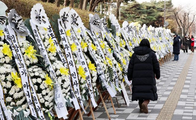 29일 SSG 홈구장인 인천 문학경기장 일대에는 구단을 향한 팬들의 항의가 담긴 근조 화환 50여개가 잇따라 설치됐다.