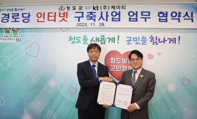 [파이낸셜경제=김영란 기자] 청도군은 지난 28일 ㈜KT와 경로당 인터넷 및 공공와이파이 구축을 위한 업무 협약을 체결했다.