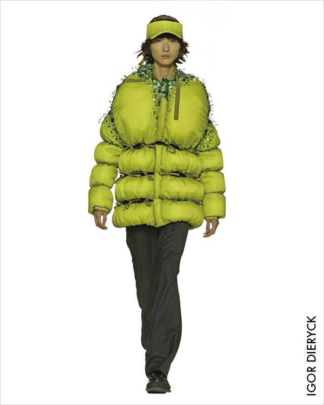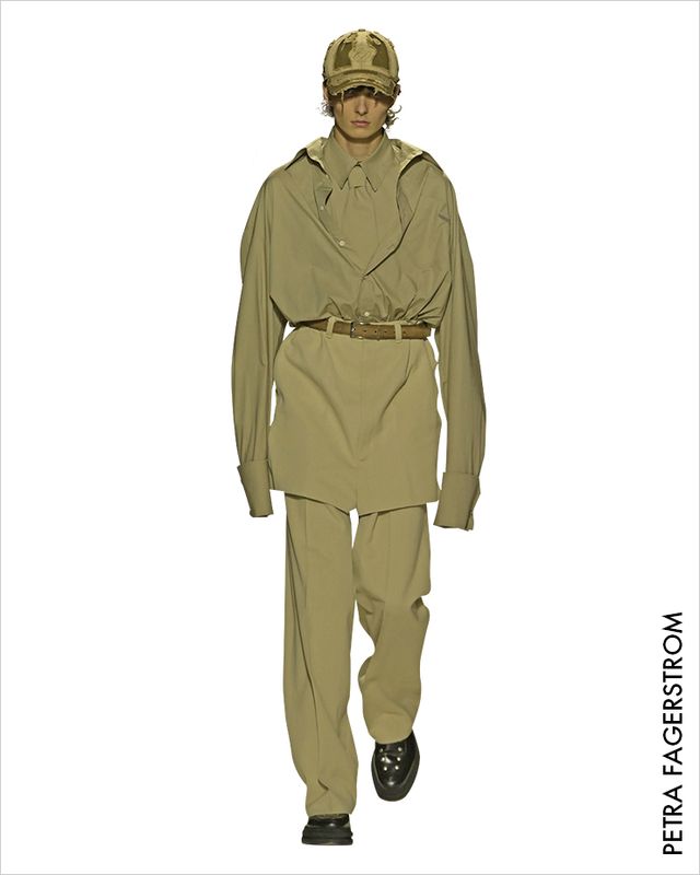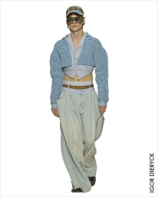 “호텔에서 명확한 레퍼런스를 얻었고, 유니폼의 중요성을 깨달았다. 유니폼은 생각보다 강력한 메시지를 가지고 있다”며 유니폼의 규칙과 상징성, 그것을 착용하는 사람이 세상과의 관계를 어떻게 변화시키는지 탐구했다고 한다. 유니폼 코드를 트위스트해 실험적인 룩을 선보인 그의 컬렉션은 완벽한 재단을 바탕으로 곧바로 판매해도 손색없는 완성도를 구현했다. 리셉션 벨에서 영감받은 둥근 커팅의 작은 재킷, 허리 위로 올라오는 과장된 하이웨이스트 팬츠, 포멀한 팬츠 톱에 매치한 XXL 사이즈로 재구성한 데님까지 재미와 패셔너블한 면모를 두루 갖췄다. 여기에 샴페인 잔에서 영감받은 두꺼운 플라스틱 프레임의 안경, 레이스업 슈즈에 삽입된 스니커즈, 내장형 가방에 붙인 장갑까지 액세서리 라인을 완벽하게 구현했다는 평가를 받았다. 재기 발랄한 아이디어와 스토리, 이를 구현하는 메이킹 능력까지 갖춘 새로운 디자이너의 출발을 엿보는 순간이었다.