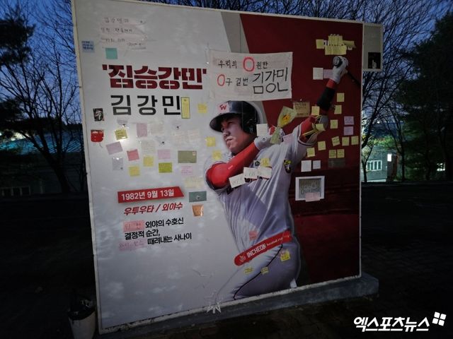 팬들의 메모지가 가득했던 곳은 역시나 20년 넘게 한 팀에서 뛴 김강민의 포토존이었다. 포토존 한쪽에는 계속 방문할 팬들을 위해 메모지와 펜 등이 준비된 상태였고, 현장을 방문한 팬들은 어두운 상황 속에서도 김강민을 위한 메시지를 작성하고 있었다.