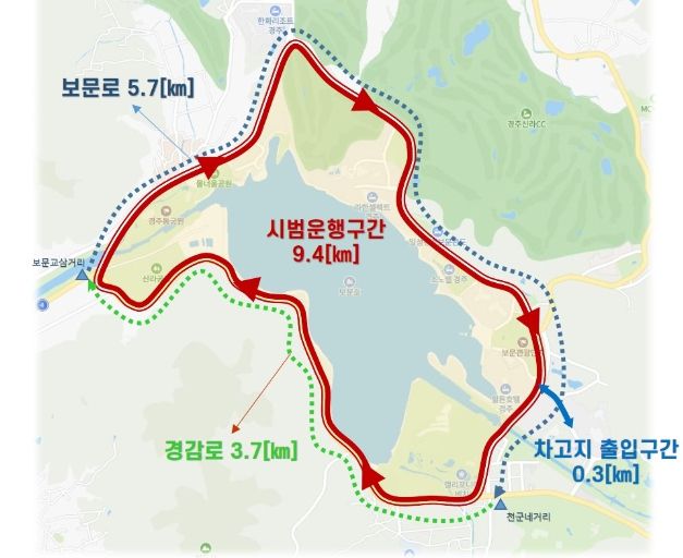 경주시는 이번 시범운행지구 지정으로 보문관광단지가 첨단교통과 우수한 관광자원이 어우러진 새로운 공간이 탄생할 것으로 기대하고 있다.
